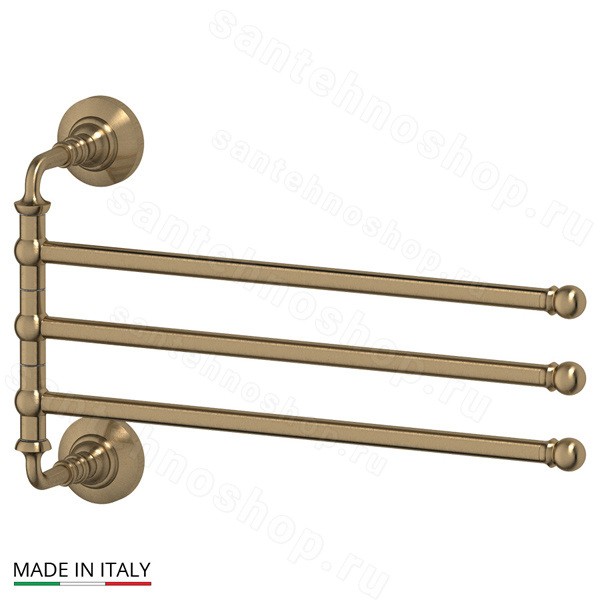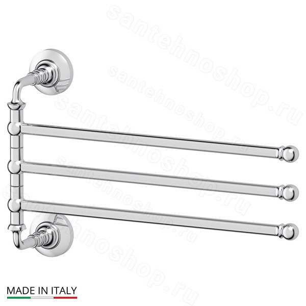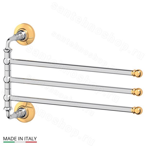 Поворотный полотенцедержатель 3SC «Stilmar» состоит из круглых и овальных деталей, которые создают единый универсальный дизайн, как для классического, так и современного стилей. Большое количество цветовых решений делают его еще более универсальным для интерьера. Изменение цвета наносятся путем гальванизации. Такая технология делает покрытие долговечным и устойчивым к химии и механическим воздействием. Сам же полотенцедержатель 3SC «Stilmar» изготовлен из латуни. Данный материал идеально подходит для ванной комнаты, поскольку неподвержен коррозии. А итальянское производство дает еще большую уверенность в качестве аксессуаров 3SC «Stilmar».