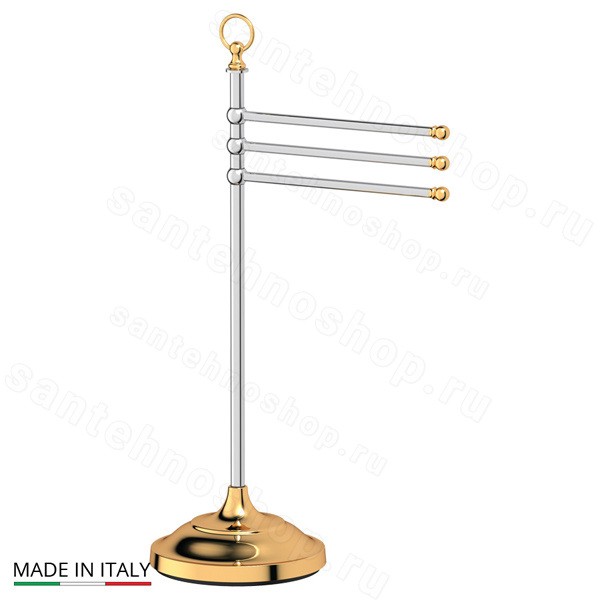 Напольная стойка с поворотным полотенцедержателем 3SC «Stilmar» состоит из круглых и овальных деталей, которые создают единый универсальный дизайн, как для классического, так и современного стилей. Большое количество цветовых решений делают его еще более универсальным для интерьера. Изменение цвета наносятся путем гальванизации. Такая технология делает покрытие долговечным и устойчивым к химии и механическим воздействием. Сама же стойка 3SC «Stilmar» изготовлена из латуни. Данный материал идеально подходит для ванной комнаты, поскольку неподвержен коррозии. А итальянское производство дает еще большую уверенность в качестве аксессуаров 3SC «Stilmar».