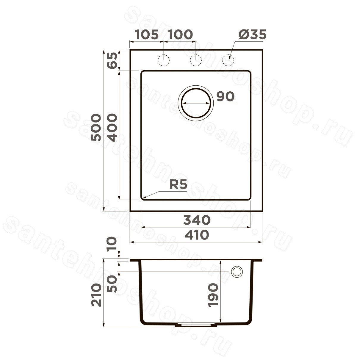 | Диаметр слива | 9 см |
