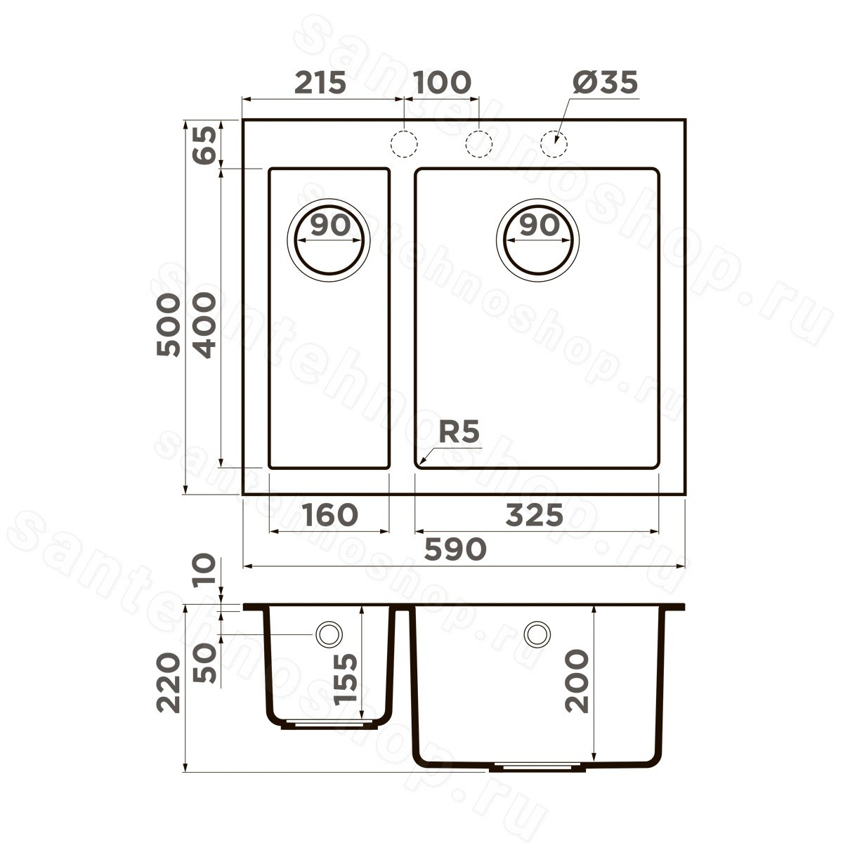 | Диаметр слива | 9 см |