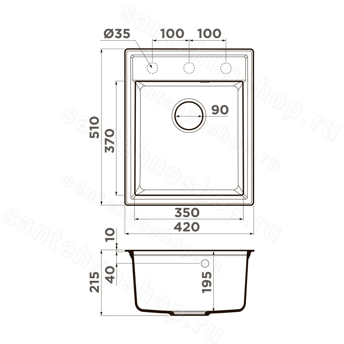 | Диаметр слива | 9 см |