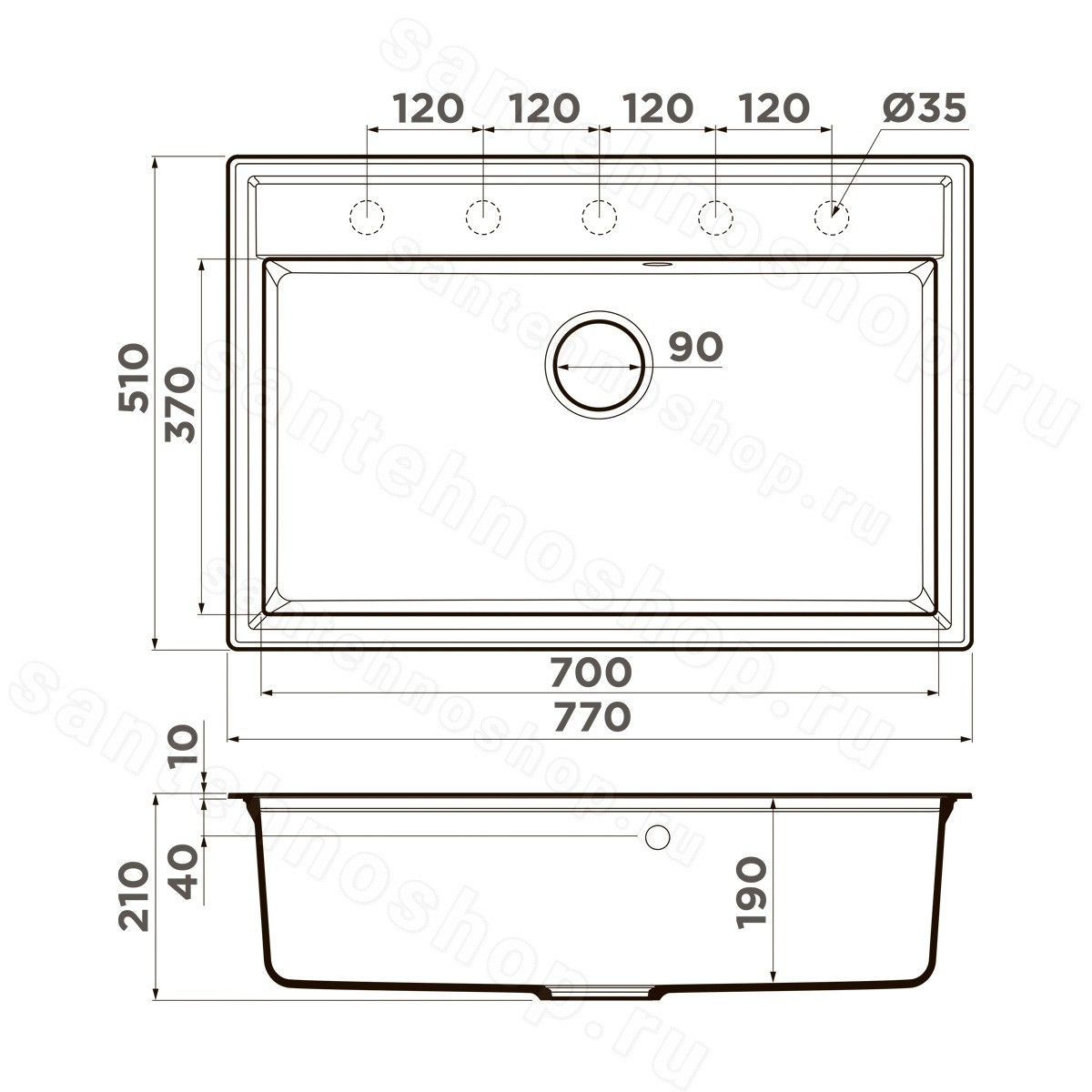 Кухонная мойка Omoikiri Daisen 77 из искусственного гранита. В основном цвете мойки присутствуют вкрапления, благодаря которым, материал выглядит как натуральный гранит.