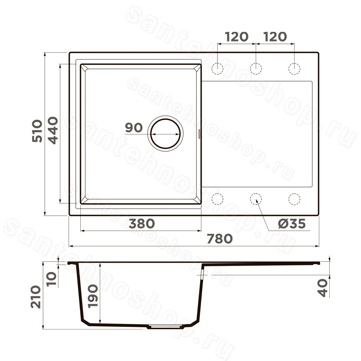 | Диаметр слива | 9 см |