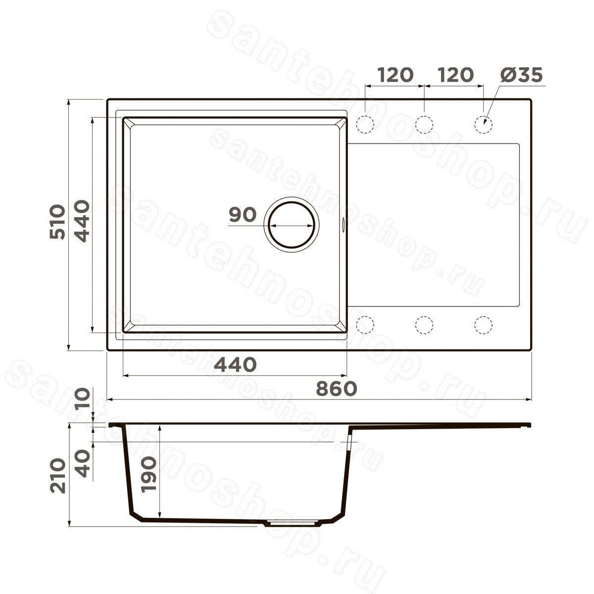 | Диаметр слива | 9 см |