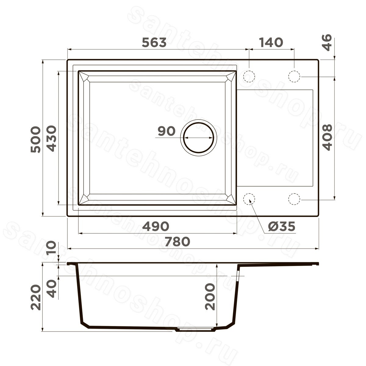 | Диаметр слива | 9 см |