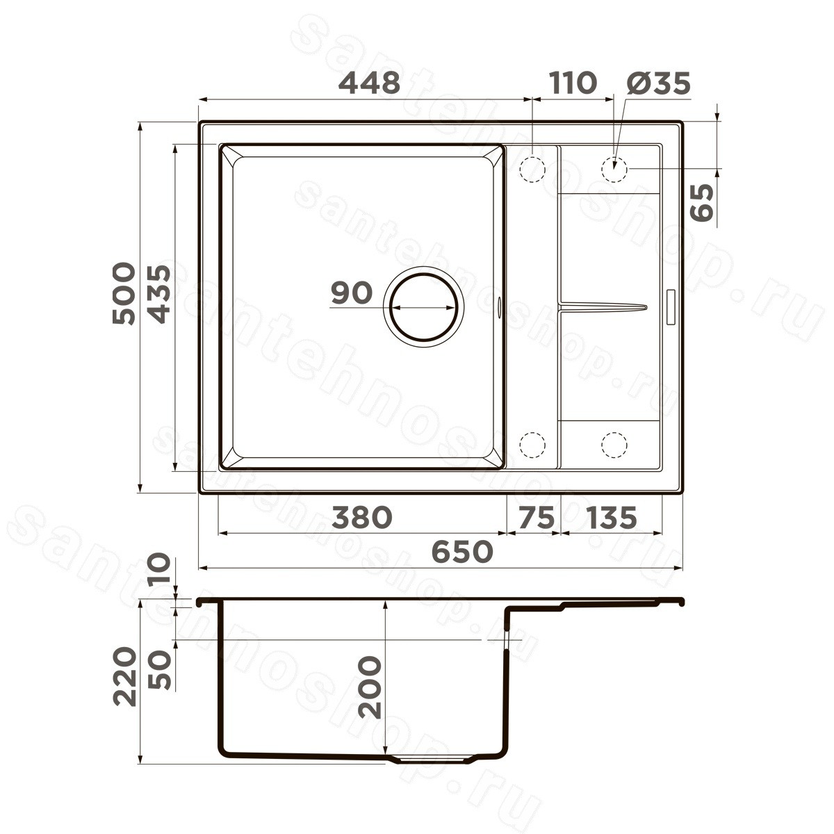 Кухонная мойка Omoikiri Sumi 65 из искусственного гранита. В основном цвете мойки присутствуют вкрапления, благодаря которым, материал выглядит как натуральный гранит.