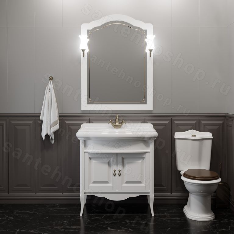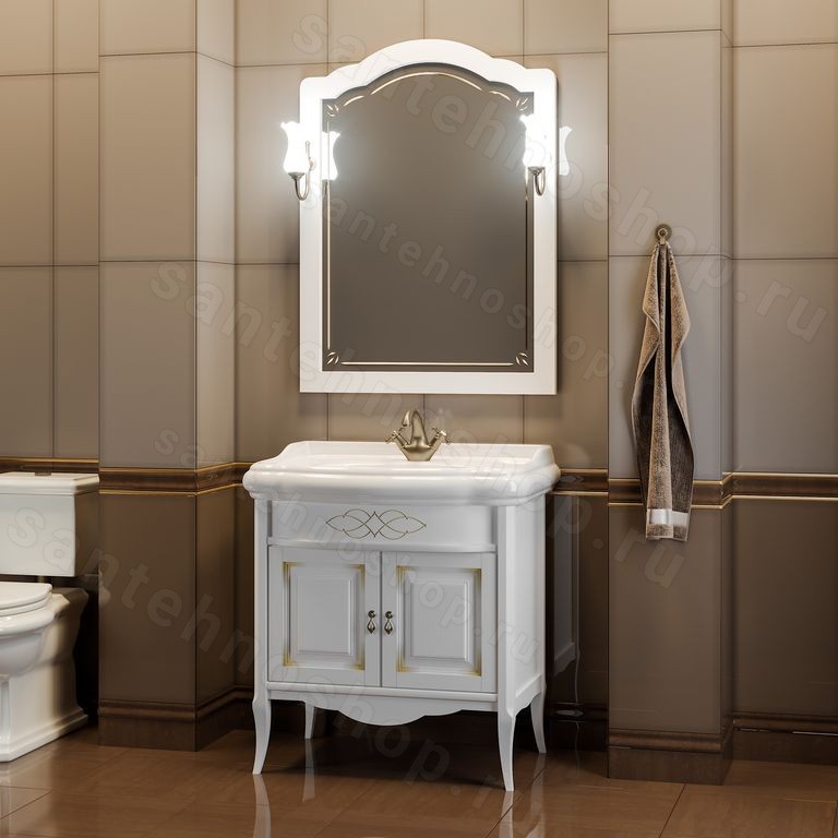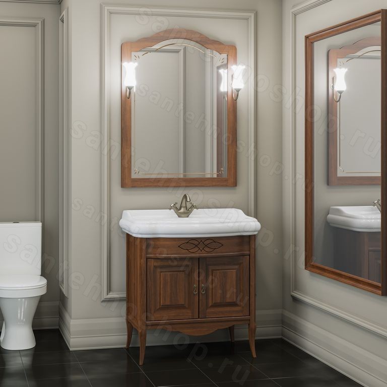 Красивый комплект мебели Opadiris «Лоренцо 80» идеально впишется в интерьер, предусматривающий отедельностоящую ванну на ножках и аксессуары и смесители в бронзовом или золотом цвете. Сама мебель представляет собой классическое направления дизайна, что хорошо подчеркивают общие силуэты мебели, фаска и резьба на фасадах. Так же стоит отметить раковину, которая имеет высокое основание и волна образный бортик, который в свою очередь служит, как и украшением, так и бортиком предотвращающим разбрызгивание воды.