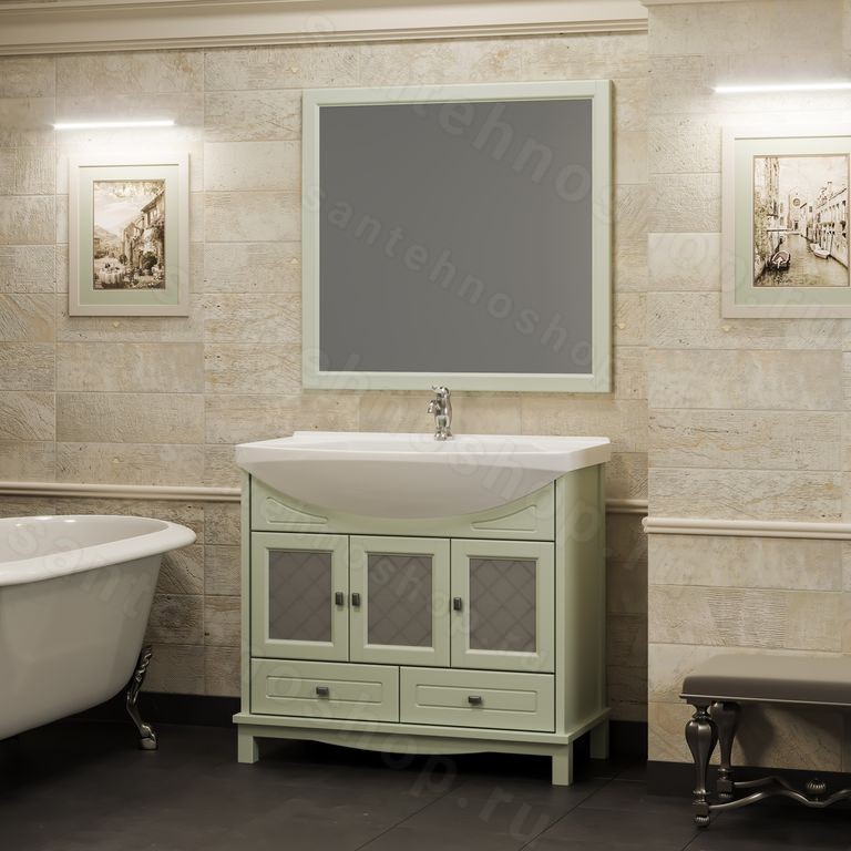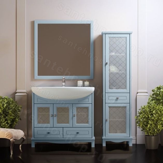 Комплект мебели для ванной комнаты Opadiris «Омега 90» выполнен в классическом стиле с деревенским уклоном, создающим особую теплую атмосферу, что особенно хорошо подчеркивают фисташковый и голубой цвета, через которые едва видна фактура дерева. На мебель установлена керамическая раковина в форме чаши с довольно большим внутренним пространством, что обеспечит удобство в использовании. В зеркале Opadiris «Омега 90» практически на всю свою ширину расположено полотно за исключением рамки, конечно же. В самой тумбе имеется три распашные дверцы и два выдвижных ящика расположенных у основания.