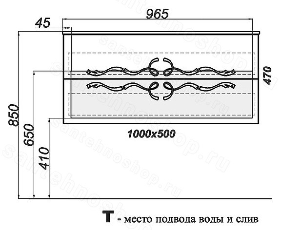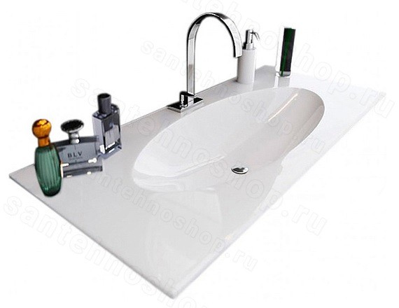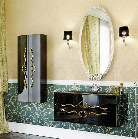 Боковые и фасадные части мебели изготовлены из высококачественного испанского МДФ концерна FINSA, покрытых 4 слоями глянца и лака. Модель имеет два ящика, оснащенных системой полного выдвижения и мягкого закрывания австрийской фирмы «Blum». Нижний ящик для удобства оснащен разделителем с подвижными элементами. Верхний ящик имеет встроенный сегрегатор для более удобного хранения различных мелочей. Внутреннее пространство ящиков покрыто 4 слоями глянца и лака. Вместо раковины, изображенной на фотографии, в комплект поставки входит другая раковина (см. дополнительное фото).