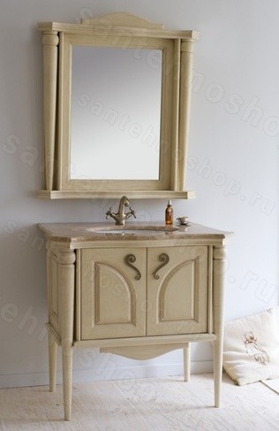 Мебель для ванной комнаты Аллигатор «Classic ALC 90Н» изготавливается из сто процентного массива дуба, в зависимости от цвета меняется покрытия мебели. Покрытие может быть трехслойным, влагостойким бесцветным лаком и влагостойким тонированным лаком. Мебель Аллигатор «Classic ALC 90Н» может быть выполнена в одном из двенадцати вариантов отделки, благодаря чему вы можете подобрать наиболее подходящий вашему интерьеру цвет мебели. Столешница изготовлена из натурального мрамора и укомплектована врезной фаянсовой раковиной Испанской фирмы Roca. Распашные двери на тумбе идут на петлях со встроенным доводчиком. Доводчики в петлях обеспечивают бесшумное и плавное закрытие двери. Окантовка зеркала так же изготавливается из массива дуба и красится в тон мебели. Зеркало Аллигатор «Classic ALC 90Н» комплектуется двумя светильниками, металлическая часть которых выполнена в тон фурнитуры на мебели. Плафоны светильников идут в матовом стекле. Комплект мебели для ванной комнаты Аллигатор «Classic ALC 90Н» выполнен в классическом стиле. Резные детали придают этой мебели изящность и подчеркивают ее классический стиль. За счет того что тумба установлена на длинные ножки она получилось легкой.