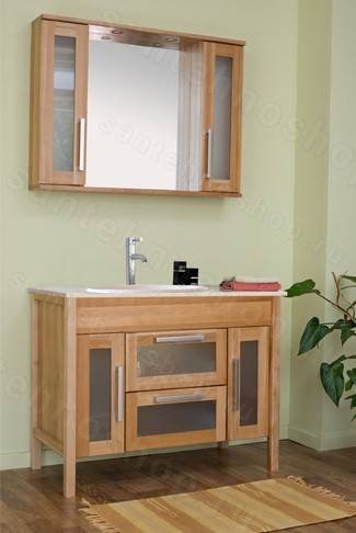 Мебель для ванной комнаты Аллигатор «Polo ALP 100A» изготавливается из сто процентного массива дуба, в зависимости от цвета меняется покрытия мебели. Покрытие может быть трехслойным, влагостойким бесцветным лаком и влагостойким тонированным лаком. Мебель Аллигатор «Polo ALP 100A» может быть выполнена в одном из двенадцати вариантов отделки, благодаря чему вы можете подобрать наиболее подходящий вашему интерьеру цвет мебели. Столешница изготовлена из натурального мрамора и укомплектована врезной фаянсовой раковиной. Что дает уверенность в том, что раковина не пожелтеет и не поцарапается со временем. Все двери на мебели Аллигатор «Polo ALP 100A» укомплектованы доводчиком. Доводчики в петлях обеспечивают бесшумное и плавное закрытие двери. Окантовка зеркала так же изготавливается из массива дуба и красится в тон мебели. Зеркало Аллигатор «Polo ALP 100A» комплектуется двумя светильниками. Плафоны светильников идут в матовом стекле. Комплект мебели для ванной комнаты Аллигатор «Polo ALP 100A» выполнена в комодном стиле и тем самым решена не нужных деталей. Простые прямые линии, украшенные фурнитурой и витражным стеклом придают мебели простоту, в которой даже не вооружённым взглядом можно разглядеть тонкую задумку дизайнера.