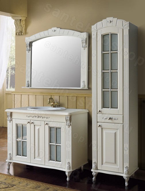 Мебель Атолл «Александрия 100» комплектуется столешницей из МДФ. Для обеспечения надежной и комфортной работы подвижных частей мебели используются петли с доводчиками. Двери, на которые установлены мебельные петли с доводчиком, не ударяются о каркас мебели при закрывании. Доводчик-амортизатор начинает свою работу за 30° до полного закрытия двери, подстраиваясь под любое приложенное усилие. Дверь закрывается плавно и абсолютно бесшумно.Тумба "Александрия" изготавливается из из материалов фирмы "Kronospan". Фасады МДФ окрашиваются специальным образом. Окрашивание осуществляется в несколько этапов.