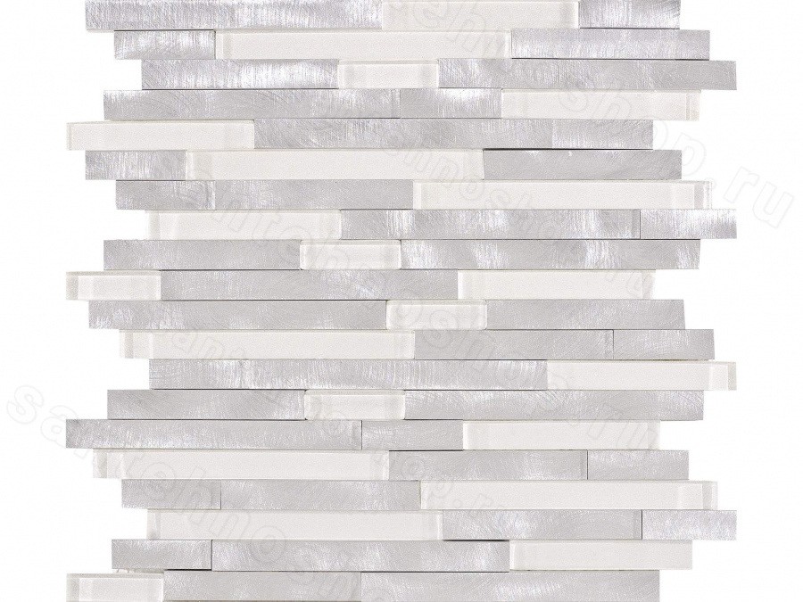 Мозаика, изготовленная из комбинации элементов из стекла и металлических профилей одинаковой длины, но разной высоты.