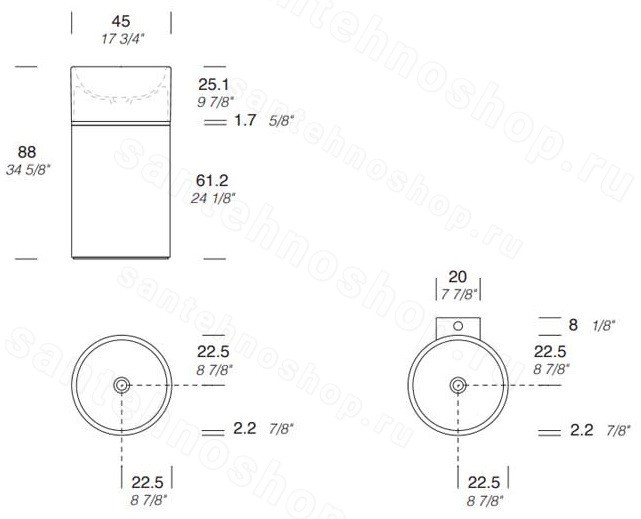 | Диаметр для сифона | 4.6 |