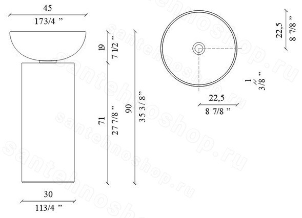 Напольная раковина Milldue Saba 5830.22-2 45x45 Nero