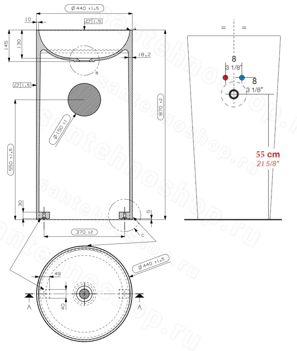 Напольная раковина Milldue Tube 2925.20*0 44x44 Bianco Opaco