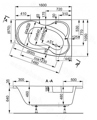 Форма ванныАсимметричная